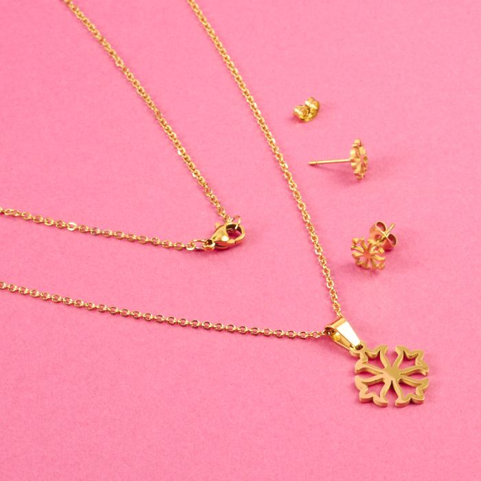 Komplet biżuterii ze stali chirurgicznej krzyż celtycki w kolorze złotym 45cm