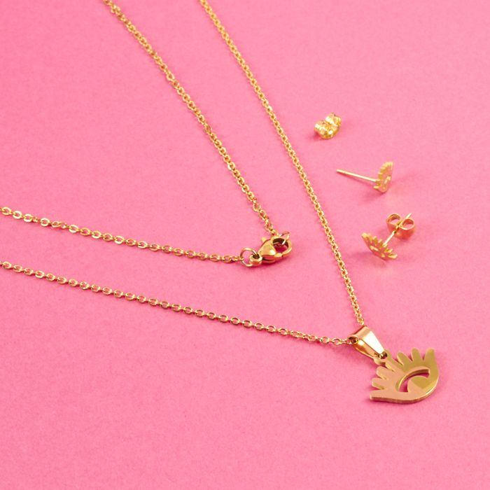 Komplet biżuterii ze stali chirurgicznej oczko w kolorze złotym 45cm