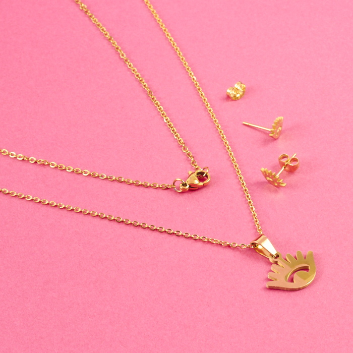 Komplet biżuterii ze stali chirurgicznej oczko w kolorze złotym 45cmTo trwały element biżuterii lub półfabrykat jubilerski, który dobrze sprawdza się w codziennych realizacjach. W biżuterii handmade stal chirurgiczna 316L jest ceniona za dobry wygląd, odporność na korozję i wygodę codziennego użytkowania.Komplet biżuterii ze stali chirurgicznej 316L to spójnie zaprojektowany zestaw, który łączy estetykę z wygodą codziennego użytkowania. Dzięki dopasowanym elementom dobrze prezentuje się jako gotowa biżuteria i ułatwia stworzenie harmonijnej stylizacji.Rozmiar