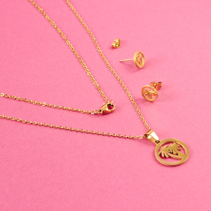 komplet biżuterii palmy w kolorze