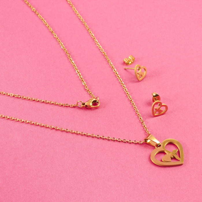 Komplet biżuterii ze stali chirurgicznej serce z linią życia w kolorze złotym 45cm