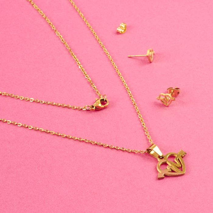 Komplet biżuterii ze stali chirurgicznej serce ze strzałą w kolorze złotym 45cm