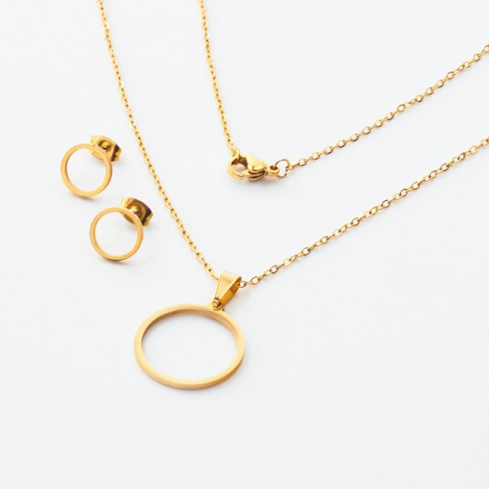 Komplet biżuterii ze stali chirurgicznej z kolczykami koło wycięte w kolorze złotym 45cm