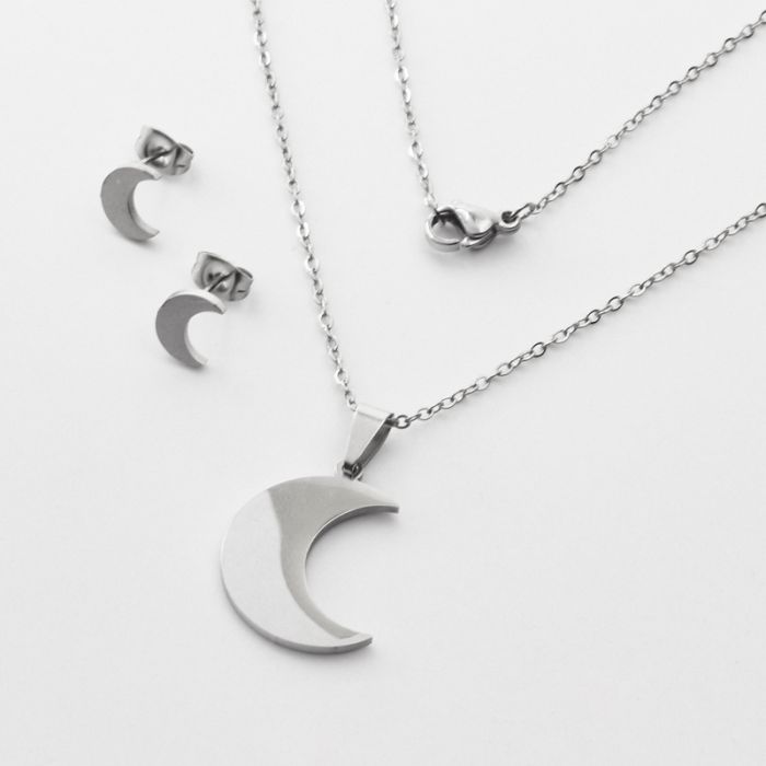 Komplet biżuterii ze stali chirurgicznej z kolczykami księżyc pełny w kolorze srebrnym 45cm