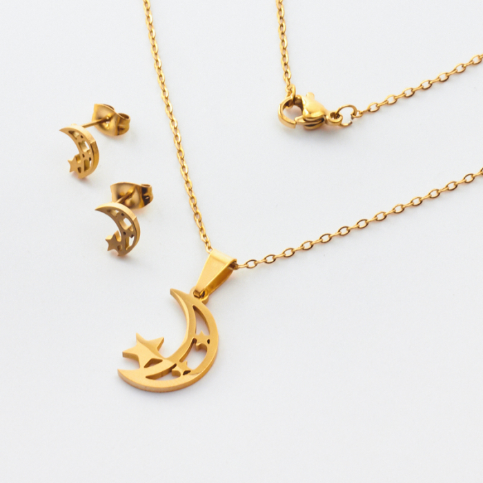 komplet biżuterii z kolczykami księżyc z gwiazdkami w kolorze