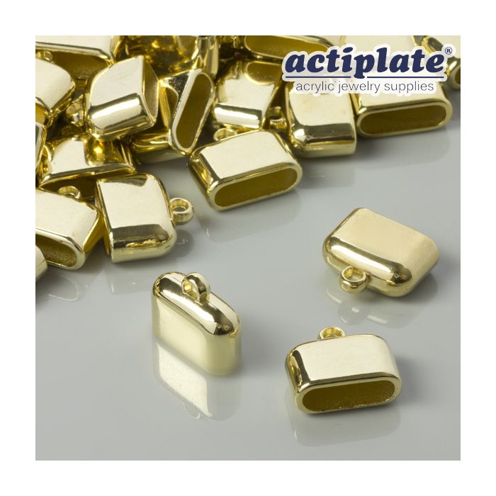 Końcówki akrylowe do rzemieni spłaszczone light gold 15x5mm