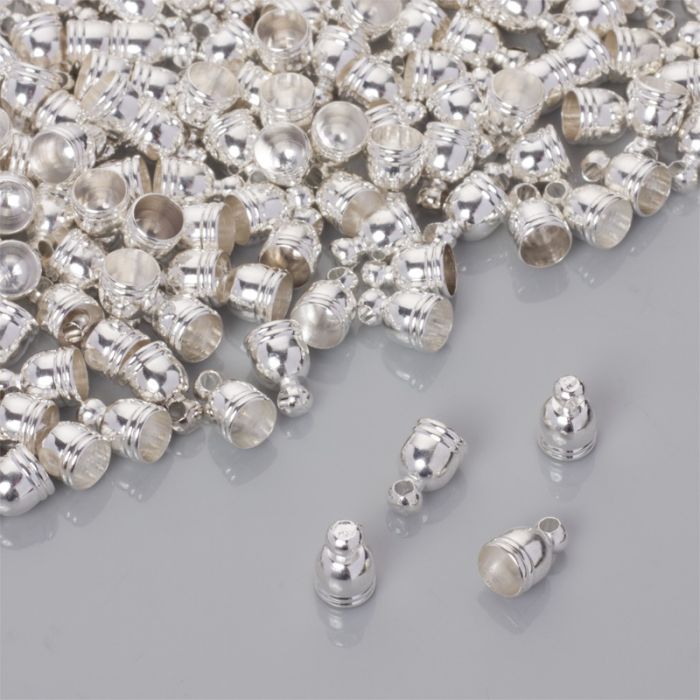 Końcówki do rzemieni i sznurków beczułki w srebrnym kolorze 5mm