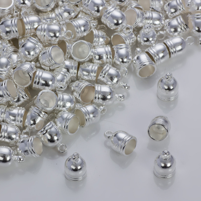 Końcówki do rzemieni i sznurków beczułki w srebrnym kolorze 6mm