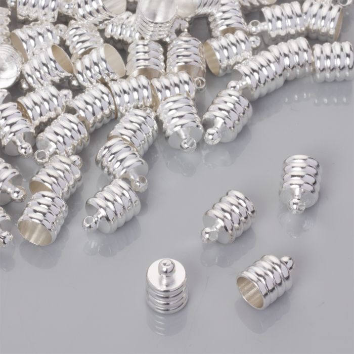 Końcówki do rzemieni rowkowane w srebrnym kolorze 6.5mm