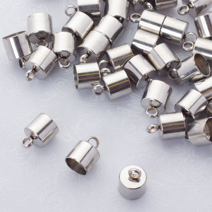 Końcówki do sznurków i rzemieni ze stali chirurgicznej w kolorze srebrnym 8mm