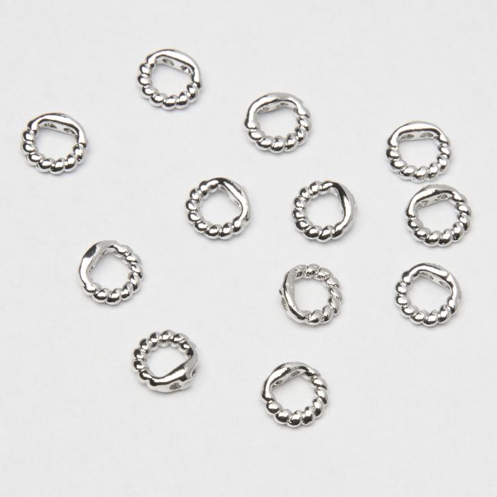 Skręcane końcówki w kolorze srebrnym z dwoma otworami Ø0,7 mm dają czyste, powtarzalne i trwałe wykończenie biżuterii bez kleju.