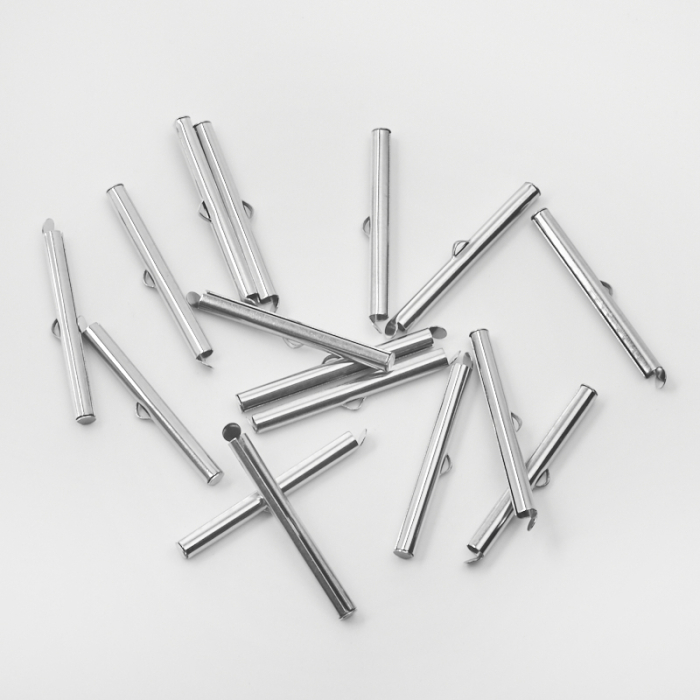 Końcówki podłużne do bransoletek ze stali chirurgicznej w kolorze srebrnym 40mmTo starannie wykonany element do tworzenia biżuterii handmade. W biżuterii handmade stal chirurgiczna 316L jest ceniona za dobry wygląd, odporność na korozję i wygodę codziennego użytkowania.Końcówki ze stali chirurgicznej 316L to praktyczne elementy wykończeniowe wykorzystywane przy montażu sznurków, rzemieni i innych baz jubilerskich. Pozwalają estetycznie zakończyć projekt i ułatwiają połączenie go z zapięciem lub innym komponentem.Rozmiar
