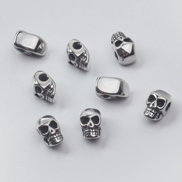 Koralik czaszka do męskich bransoletek ze stali chirurgicznej w kolorze srebrnym 13x7mm