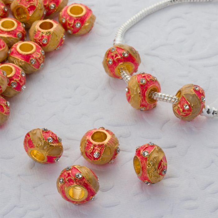 Koralik emaliowany z kryształkami pink rose 4,5mm