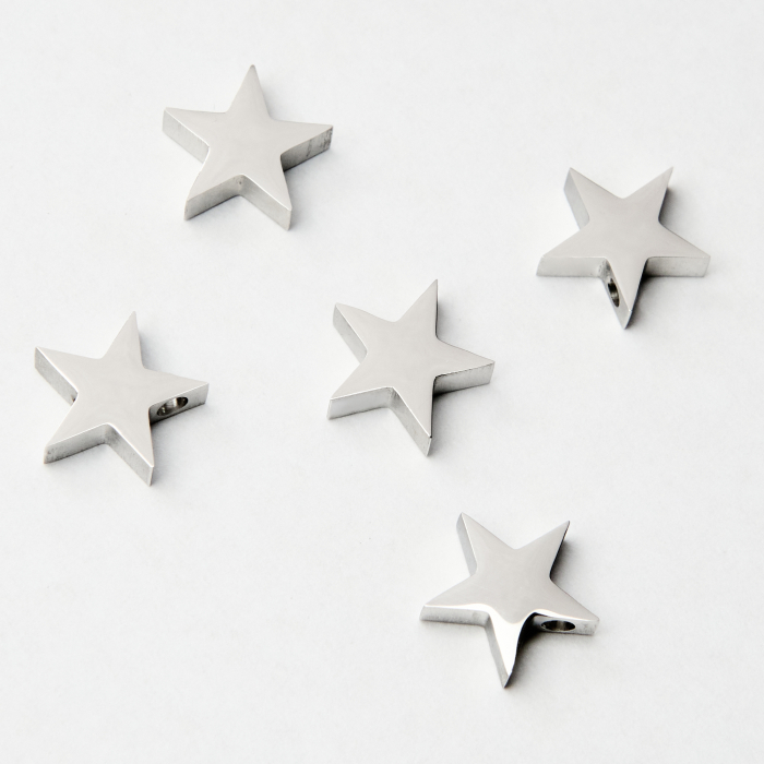 - Stal chirurgiczna 316L sprawdza się w naszyjnikach, bransoletkach, kolczykach, zawieszkach oraz wielu innych projektach biżuterii handmade.Koralik gwiazdka w kolorze srebrnym to praktyczny i estetyczny element, który pomoże Ci stworzyć dopracowaną biżuterię handmade. Dodaj go do koszyka i wykorzystaj w swoim kolejnym projekcie.*Uwaga!Produkt przeznaczony do wykonywania rękodzieła, w tym biżuterii i innych ozdób. Produkt nie jest przeznaczony dla dzieci i zwierząt. Produkt nie jest przeznaczony do spożycia. Podczas używania produktu zalecamy stosowanie sprzętu ochronnego np. okularów ochronnych, rękawic. Produkt należy przechowywać poza zasięgiem dzieci oraz zwierząt domowych, a także stosować zgodnie z jego przeznaczeniem. Małe elementy stanowią zagrożenie uduszenia w przypadku połknięcia.