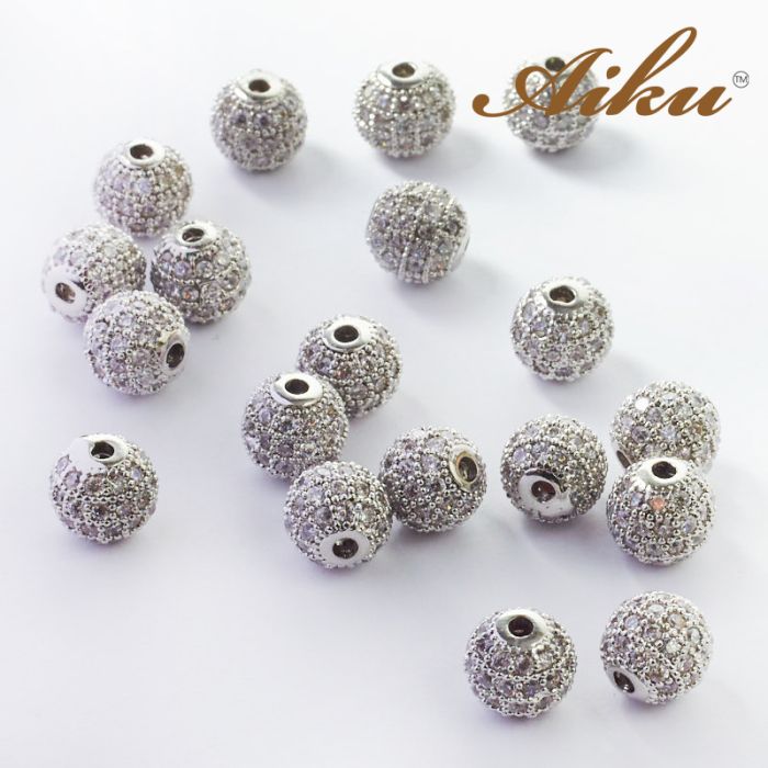 Koralik kulka z cyrkoniami rodowana 7,5mm