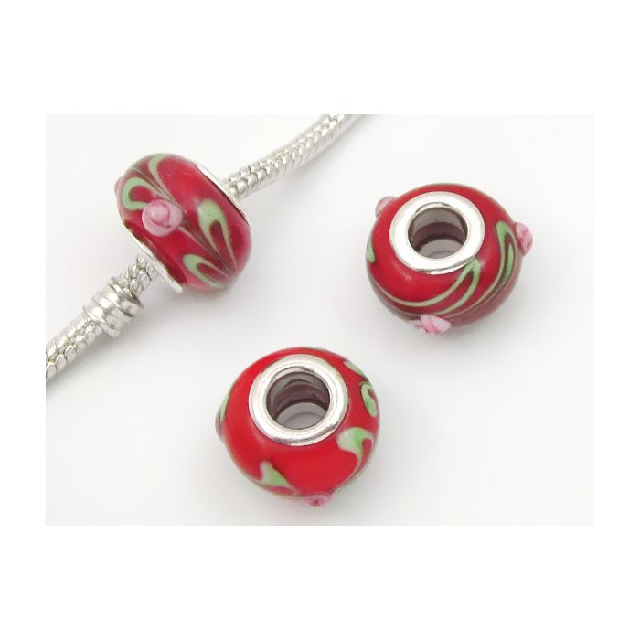 Koralik lampwork czerwone tulipany 13mm