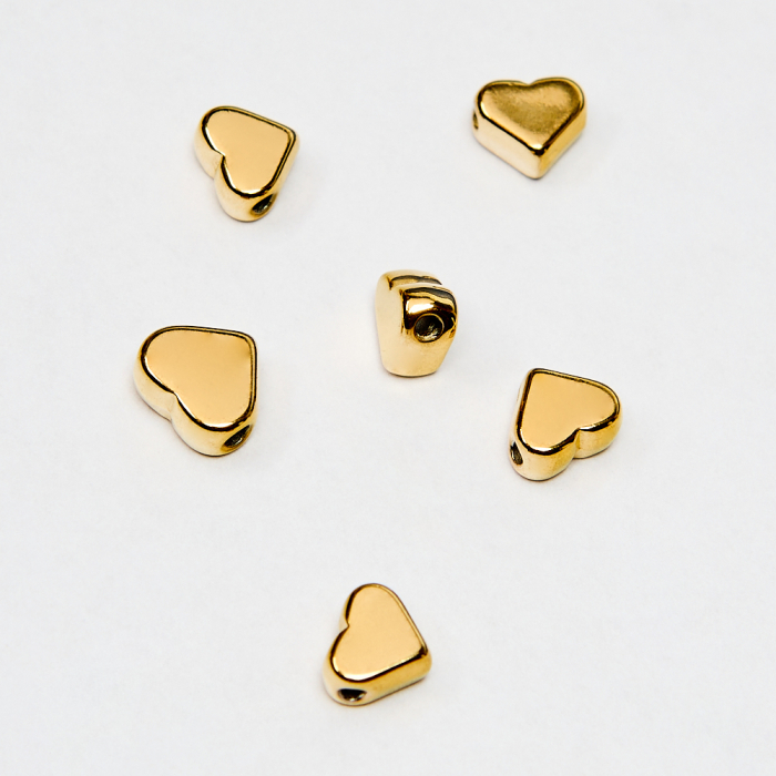Płaski, złoty koralik-serduszko 5x6 mm dodaje kompozycjom elegancji bez zbędnej masy. Wykonany ze stali chirurgicznej w kolorze złotym, łączy trwałość i estetykę w projektach handmade. Rozmiar 5x6 mm jest świetny do minimalistycznych bransoletek i naszyjników.