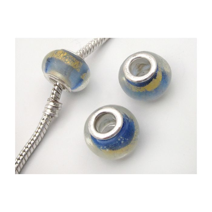 Koralik szkło weneckie złoty pas w niebieskim 13mm