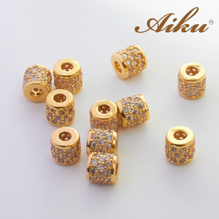 Koralik walec z cyrkoniami złocony 7mm
