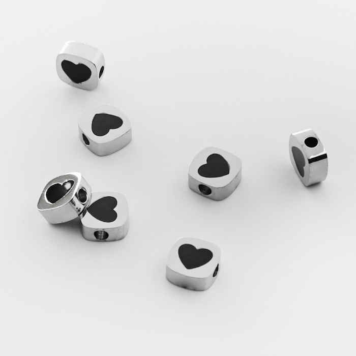 Koralik ze stali chirurgicznej emaliowany czarne serce w kolorze srebrnym 8x8mmTo uniwersalny element wykończeniowy i dekoracyjny do projektów jubilerskich. Stal chirurgiczna 316L jest ceniona za odporność na korozję i estetyczny wygląd w codziennym użytkowaniu.Element ozdobny ze stali chirurgicznej 316L może pełnić funkcję koralika, przekładki lub subtelnego detalu wykończeniowego w biżuterii handmade. Tego typu półfabrykaty pomagają uporządkować kompozycję, oddzielić większe elementy i nadać projektowi bardziej dopracowany wygląd.Rozmiar