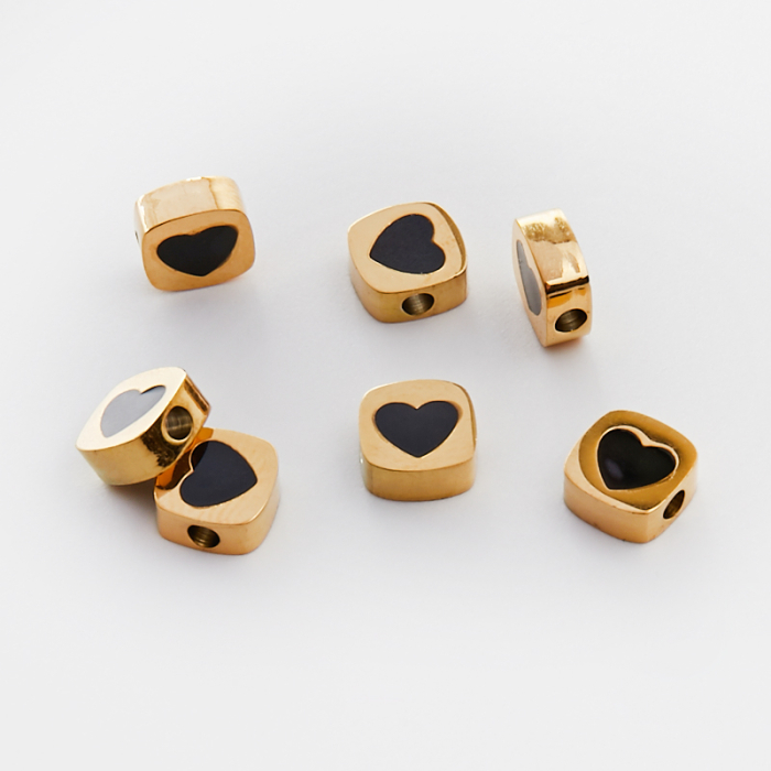Koralik ze stali chirurgicznej emaliowany czarne serce w kolorze złotym 8x8mm PVD