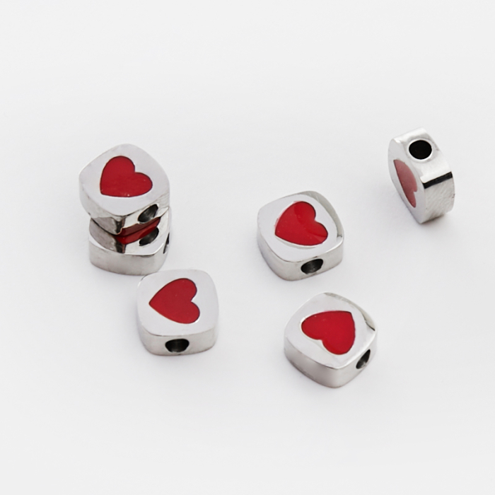Koralik ze stali chirurgicznej emaliowany czerwone serce w kolorze srebrnym 8x8mmTo starannie wykonany element do tworzenia biżuterii handmade. Stal chirurgiczna 316L jest ceniona za odporność na korozję i estetyczny wygląd w codziennym użytkowaniu.Element ozdobny ze stali chirurgicznej 316L może pełnić funkcję koralika, przekładki lub subtelnego detalu wykończeniowego w biżuterii handmade. Tego typu półfabrykaty pomagają uporządkować kompozycję, oddzielić większe elementy i nadać projektowi bardziej dopracowany wygląd.Rozmiar