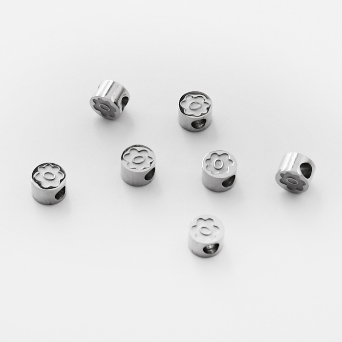 Koralik ze stali chirurgicznej okrągły z kwiatkiem w kolorze srebrnym 5mmTo starannie wykonany element do tworzenia biżuterii handmade. Stal szlachetna dobrze sprawdza się w biżuterii noszonej na co dzień, ponieważ łączy trwałość z estetycznym wykończeniem.Element ozdobny ze stali szlachetnej może pełnić funkcję koralika, przekładki lub subtelnego detalu wykończeniowego w biżuterii handmade. Tego typu półfabrykaty pomagają uporządkować kompozycję, oddzielić większe elementy i nadać projektowi bardziej dopracowany wygląd.Rozmiar