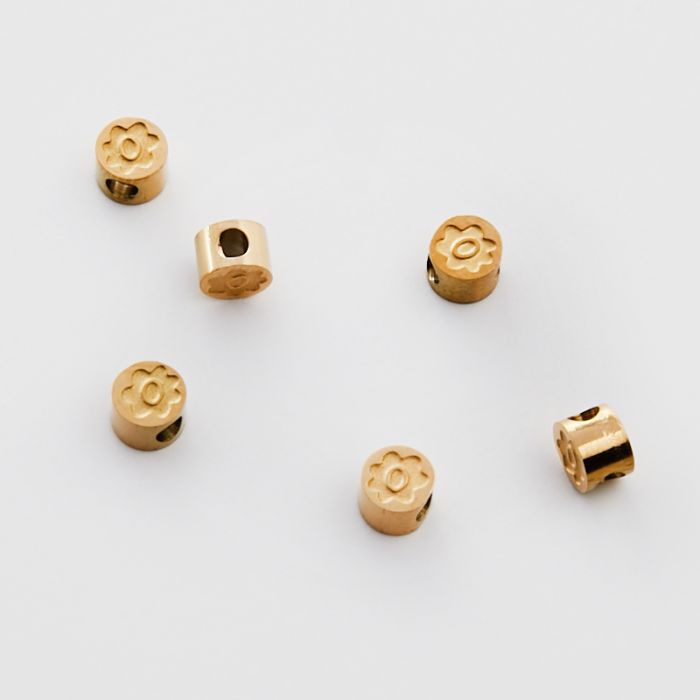 Koralik ze stali chirurgicznej okrągły z kwiatkiem w kolorze złotym 5mm PVD