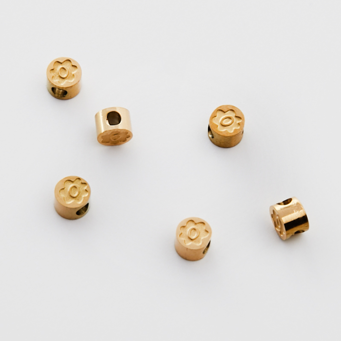 Koralik ze stali chirurgicznej okrągły z kwiatkiem w kolorze złotym 5mm PVDTo praktyczny półfabrykat do projektów biżuteryjnych. W biżuterii handmade stal chirurgiczna 316L jest ceniona za dobry wygląd, odporność na korozję i wygodę codziennego użytkowania. Wykończenie w kolorze złotym uzyskane metodą PVD.Element ozdobny ze stali chirurgicznej 316L może pełnić funkcję koralika, przekładki lub subtelnego detalu wykończeniowego w biżuterii handmade. Tego typu półfabrykaty pomagają uporządkować kompozycję, oddzielić większe elementy i nadać projektowi bardziej dopracowany wygląd.Rozmiar