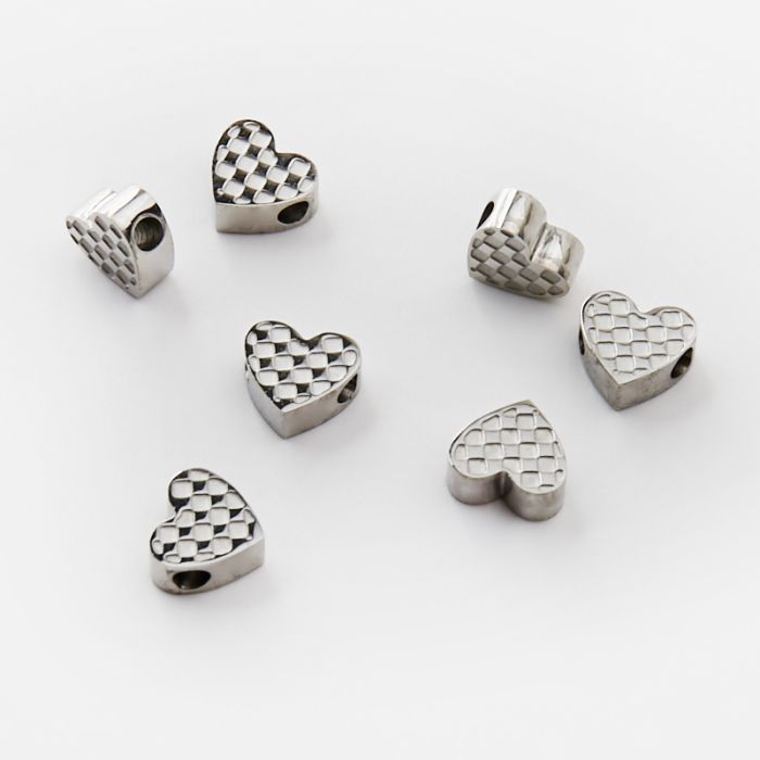 Koralik ze stali chirurgicznej serce w kratkę w kolorze srebrnym 7x8mm