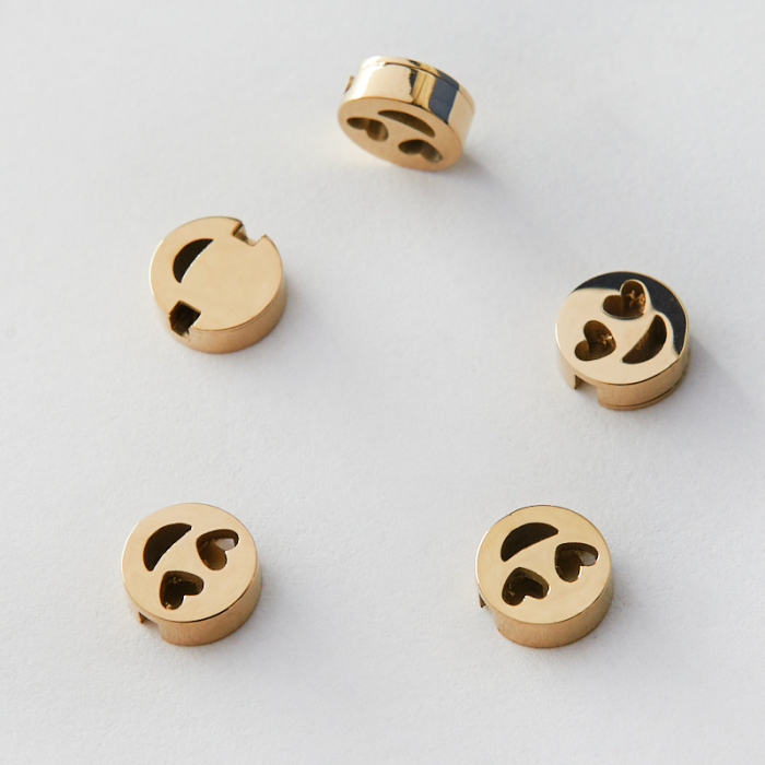 Koralik ze stali chirurgicznej uśmiechnięta buźka z sercami w kolorze złotym 17mmTo trwały i estetyczny element do tworzenia biżuterii handmade. Stal chirurgiczna 316L jest ceniona za odporność na korozję i estetyczny wygląd w codziennym użytkowaniu.Element ozdobny ze stali chirurgicznej 316L może pełnić funkcję koralika, przekładki lub subtelnego detalu wykończeniowego w biżuterii handmade. Tego typu półfabrykaty pomagają uporządkować kompozycję, oddzielić większe elementy i nadać projektowi bardziej dopracowany wygląd.Rozmiar