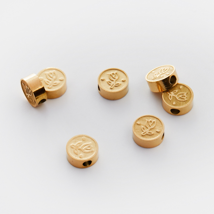 Koralik ze stali chirurgicznej z tulipanem w kolorze złotym 8mm PVD