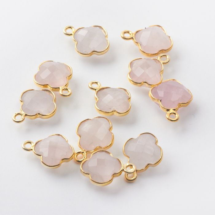 Kryształ górski różowy koniczyna marokańska fasetowana w srebrnym okuciu AG925 pozłacana 8,5mm
