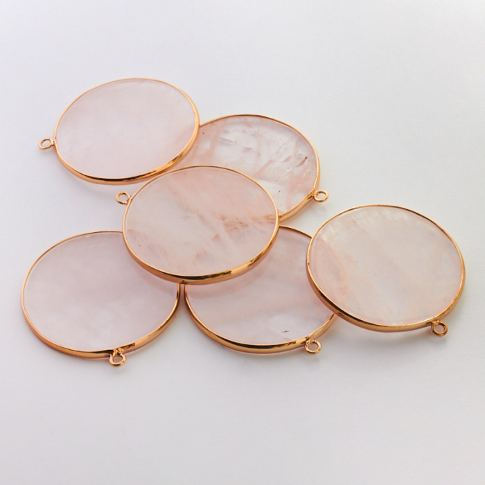 Kryształ górski różowy zawieszka krążek w okuciu 41mm