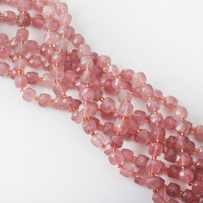 Kryształ górski truskawkowy kostka fasetowana 8,5mm