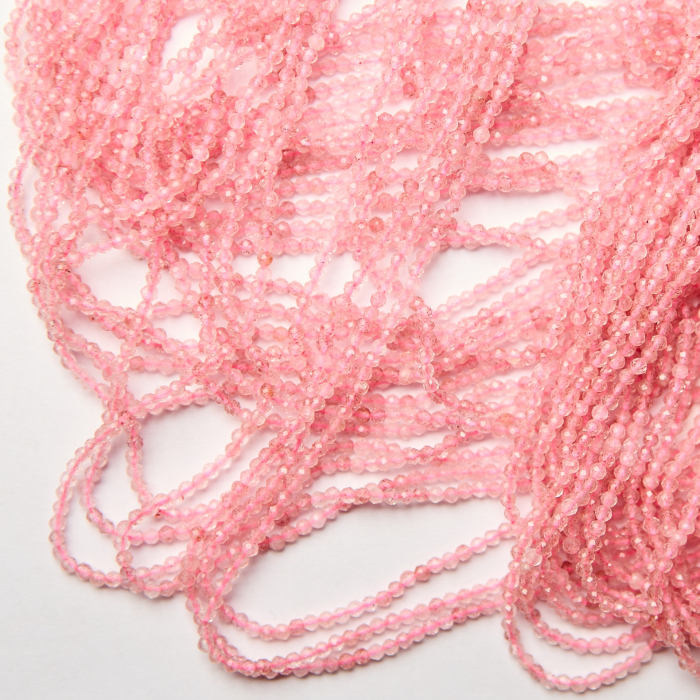 Kryształ górski truskawkowy kulka fasetowana 2,5mm - na sznurze