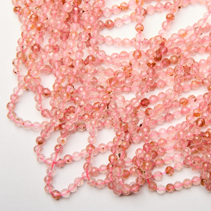 Kryształ górski truskawkowy kulka fasetowana 4mm - na sznurze