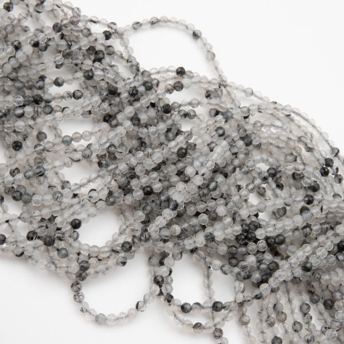 Kryształ górski z czarnym rutylem kulka fasetowana 2,5mm