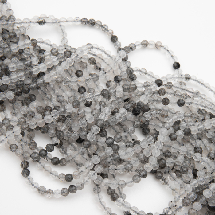 Kryształ górski z czarnym rutylem kulka fasetowana 3,5mm