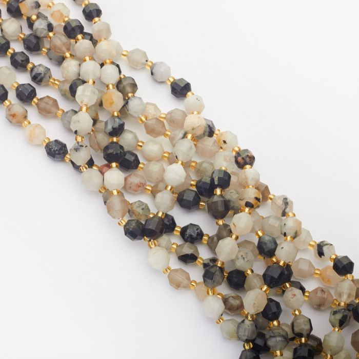Kryształ górski z czarnym turmalinem baryłka fasetowana 8mm