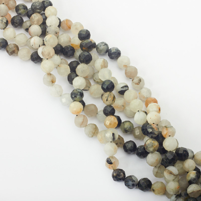 Kryształ górski z czarnym turmalinem kulka fasetowana 8mm