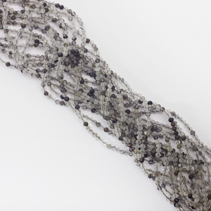 Bardzo drobne kamienie naturalne wykonane z kryształu górskiego z rutylem. Kulki są przezroczyste, jednak dzięki inkluzji rutylu, niektóre są szare, czarne lub mają czarne nitki. *Ponieważ są to kamienie naturalne mogą się nieznacznie różnić od siebie rozmiarem.*Rozmiar podany w nazwie produktu jest wartością orientacyjną. Charakterystyka: