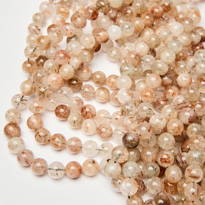 Kolor: przezroczysty, kremowy, biały, brązowy, pomarańczowy, kamienie są półprzezroczyste z wybarwieniami, wewnątrz posiadają nitki rutylu