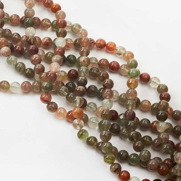 Kryształ górski z zielonym rutylem 8mm
