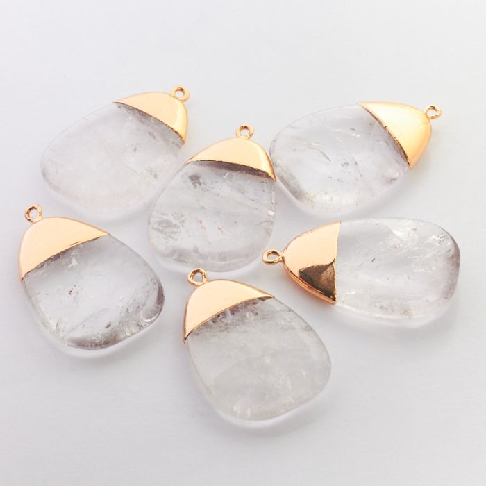 Kryształ górski zawieszka łezka w okuciu złotym 38mm