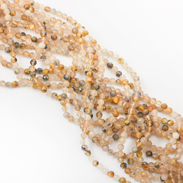 Kryształ górski ze złotym rutylem wyróżnia się tym, że transparentność lub lekka mleczność sprawiają, że pięknie odbija światło i optycznie rozjaśnia projekt. To uniwersalny kamień do bransoletek, naszyjników i kolczyków handmade.