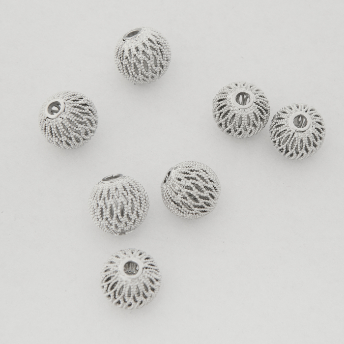 Kulki ażurowe z mosiądzu w kolorze srebrnym 10mm
