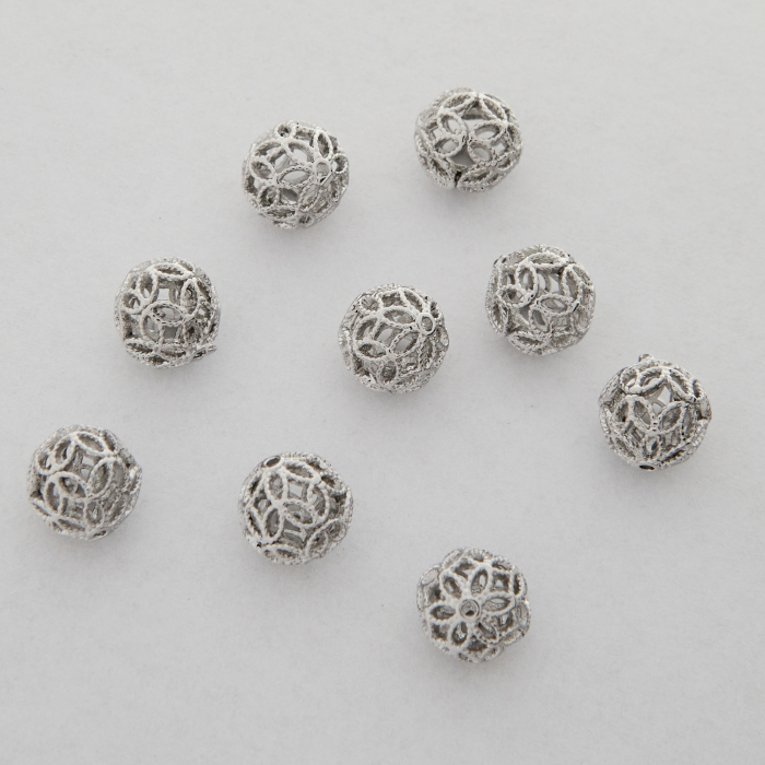 Kulki ażurowe z mosiądzu w kolorze srebrnym 7,5mm