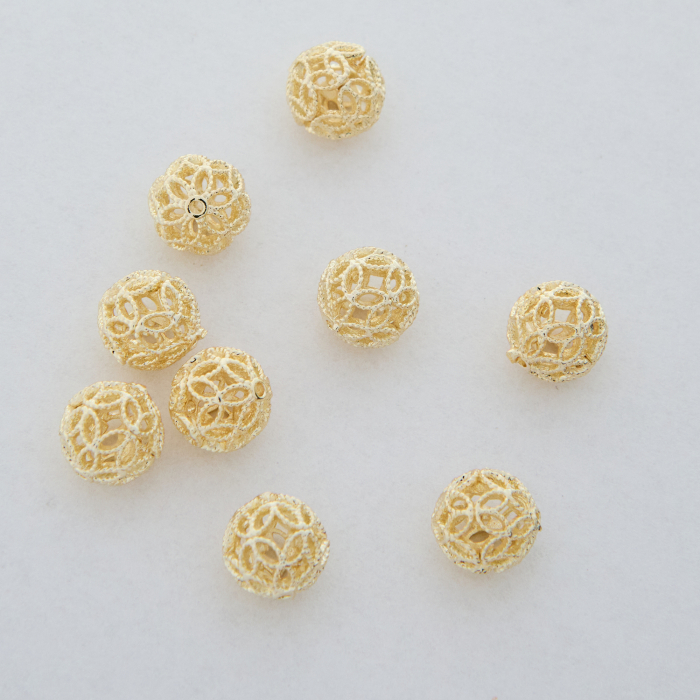 Kulki ażurowe z mosiądzu w kolorze złotym 7,5mm